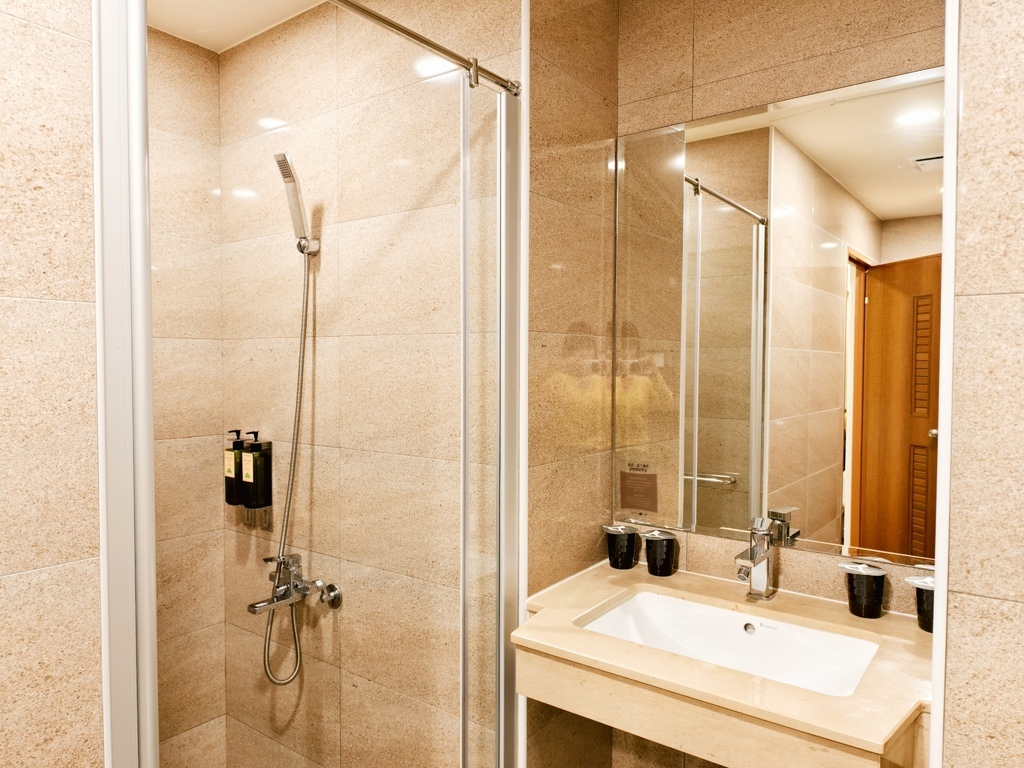 浴室乾濕分離,水壓也很穩,洗澡洗得蠻開心的(住飯店我超在意水壓欸~哈)