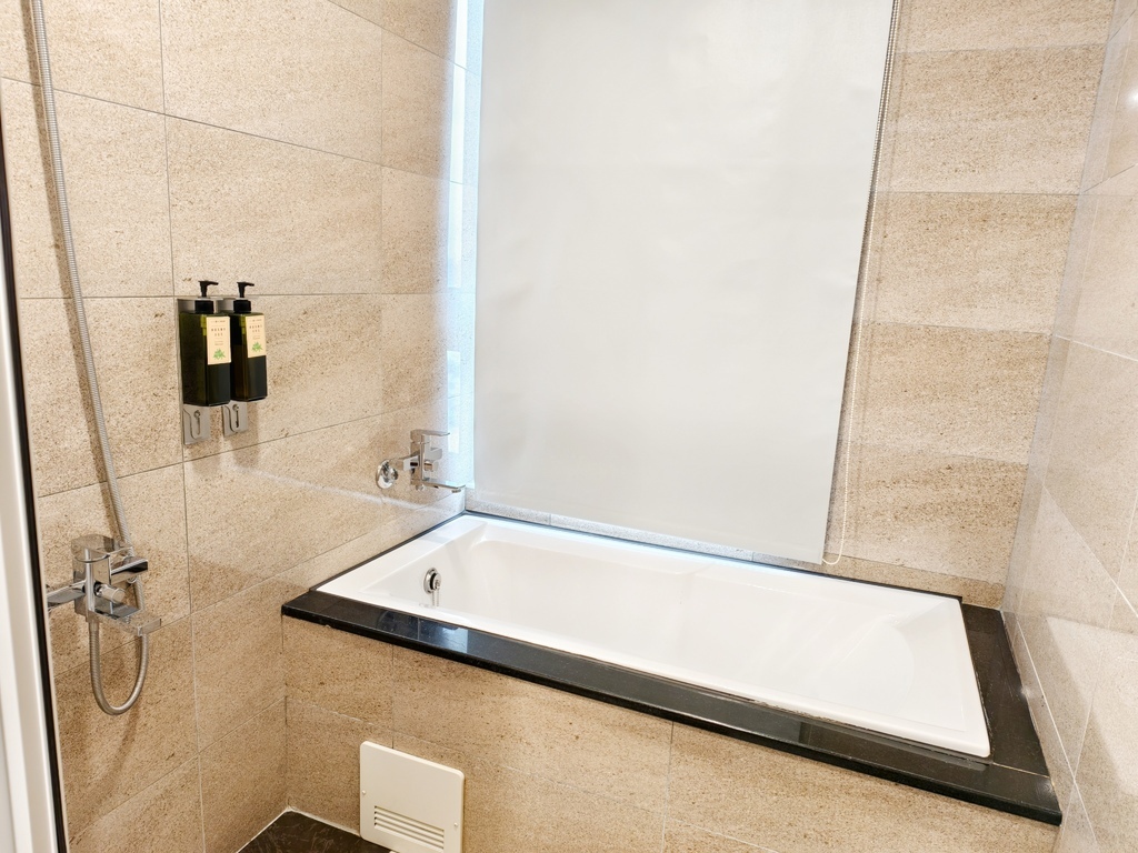 房間裡有浴缸,逛累了可以泡澡舒壓