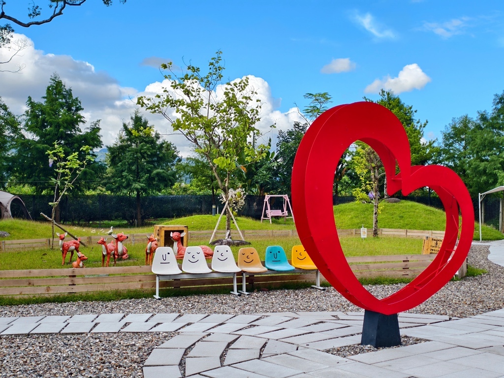 紅色愛心裝置藝術:搭配後方的綠意和藍天,隨便拍都超有質感,是必拍打卡點